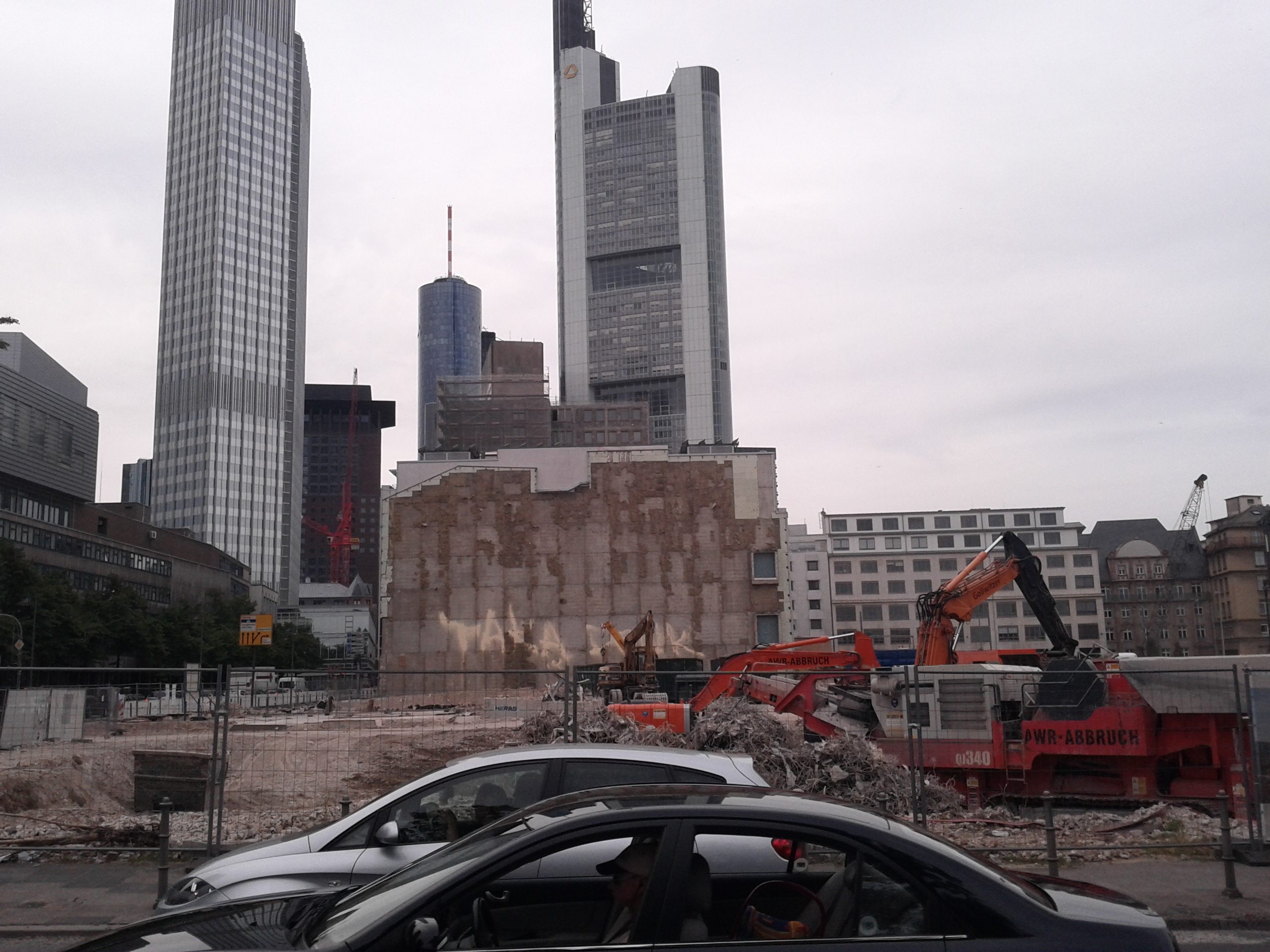 Having looked at this skyline from various points of view my impression is of a heterogeneous and incremental landscape, born out of the identity of the city and its actors, more than from the need to show off of many Mayors or entrepreneurs around the world. The skyline in Frankfurt is the result of a rather slow accumulation of highrise buildings (started by the Deutsche Bank in 1979 and not yet completed), whereby the competition to be the tallest, the most attractive or the most peculiar is not immediately evident. The slow rate of speed and the understatement outlook of the buildings, together with some attention for the impact on urban environment and infrastructure, makes this bunch of skyscrapers in a way sustainable.