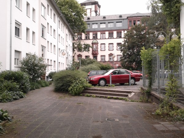 Above the building site of a new museum, between the river bank and the historical city center. In the background the financial city. Below an ordinary inner yard, at a very prominent place. Adjacency and interlacements of prominent buildings and representatives public spaces with more ordinary ones is another pleasant feature of the European compact city.