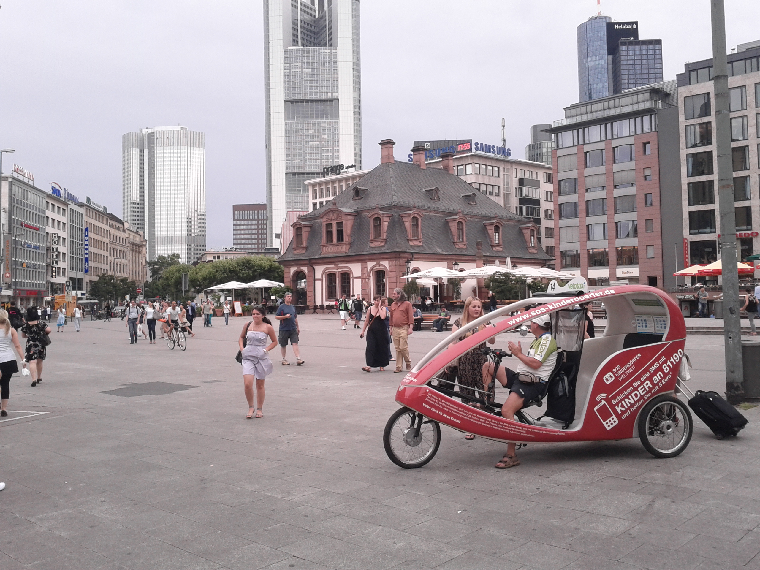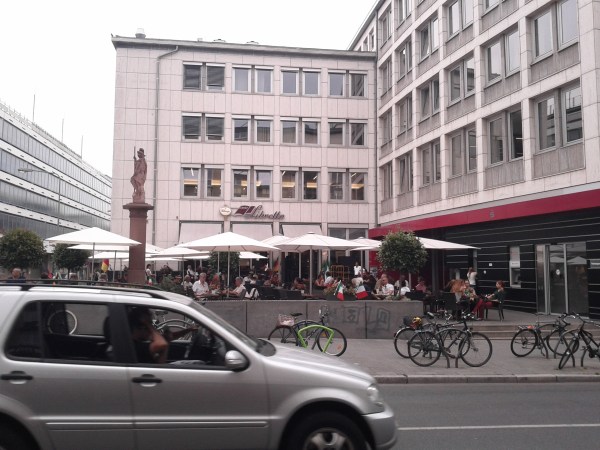 One the main features of European cities is density and variety that allows you in a few minutes walk to access radically different places and experiences. In the following pictures (I know it’s the fourth post about Frankfurt, I promise it’s the last one) I document the walk from Zum Gemahlten Haus (below) – the most famous place to drink (gorgeous!) Apfelwein in Sachsenhausen – to the hearth of frankfurter consumerism (Zeilgalerie department store) located on one of the most expensive retail streets (Zeil) of Europe. From its roof terrace bar you can enjoy a nice view over some highrise buildings of the city (the highest is the Kommerzbank tower designed by Norman Foster).