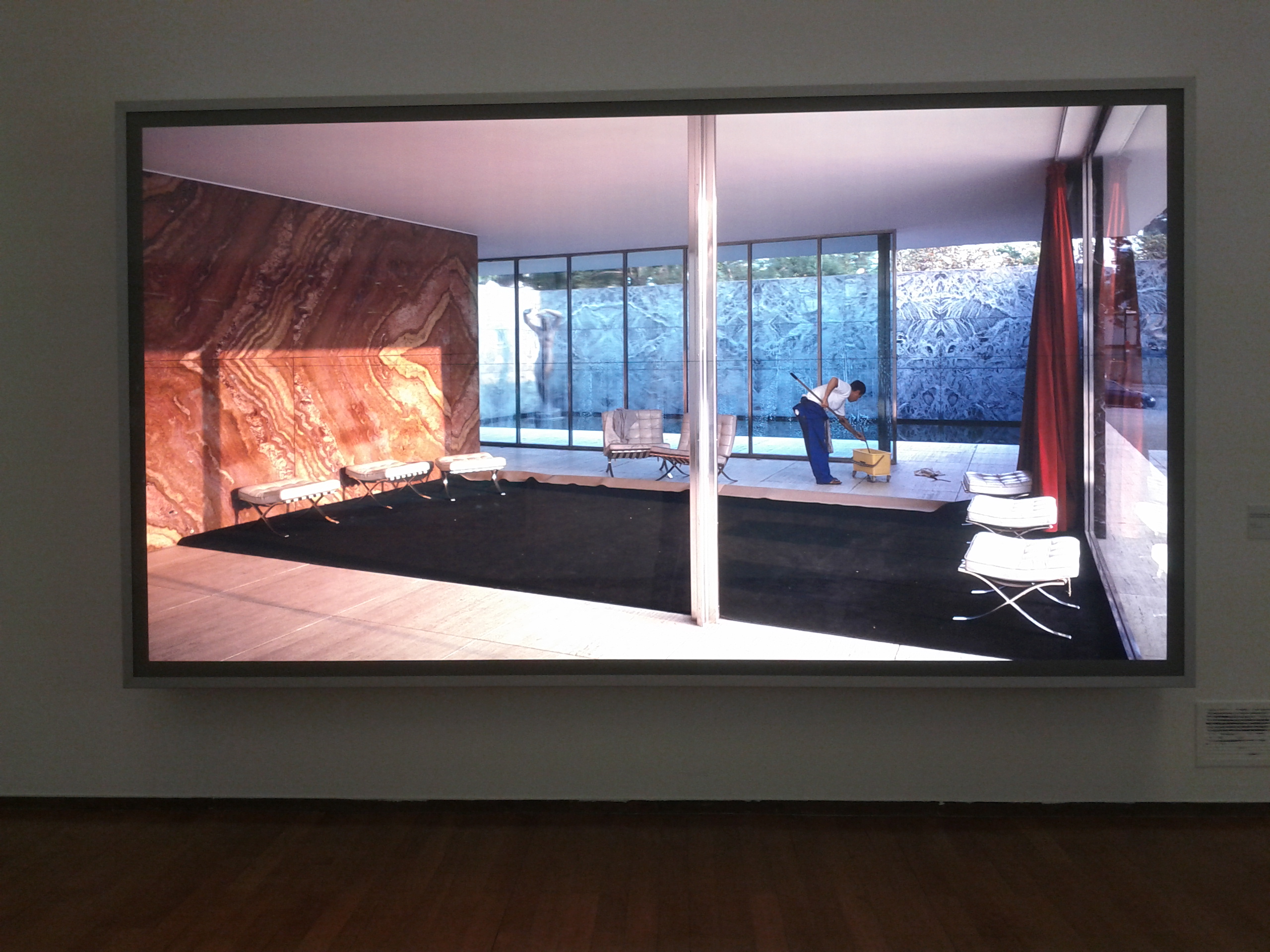Jeff Wall, Morning Cleaning, Mies van der Rohe Foundation, Barcelona, 1999, lightbox, 187 x 351 cm, Courtesy of the artist